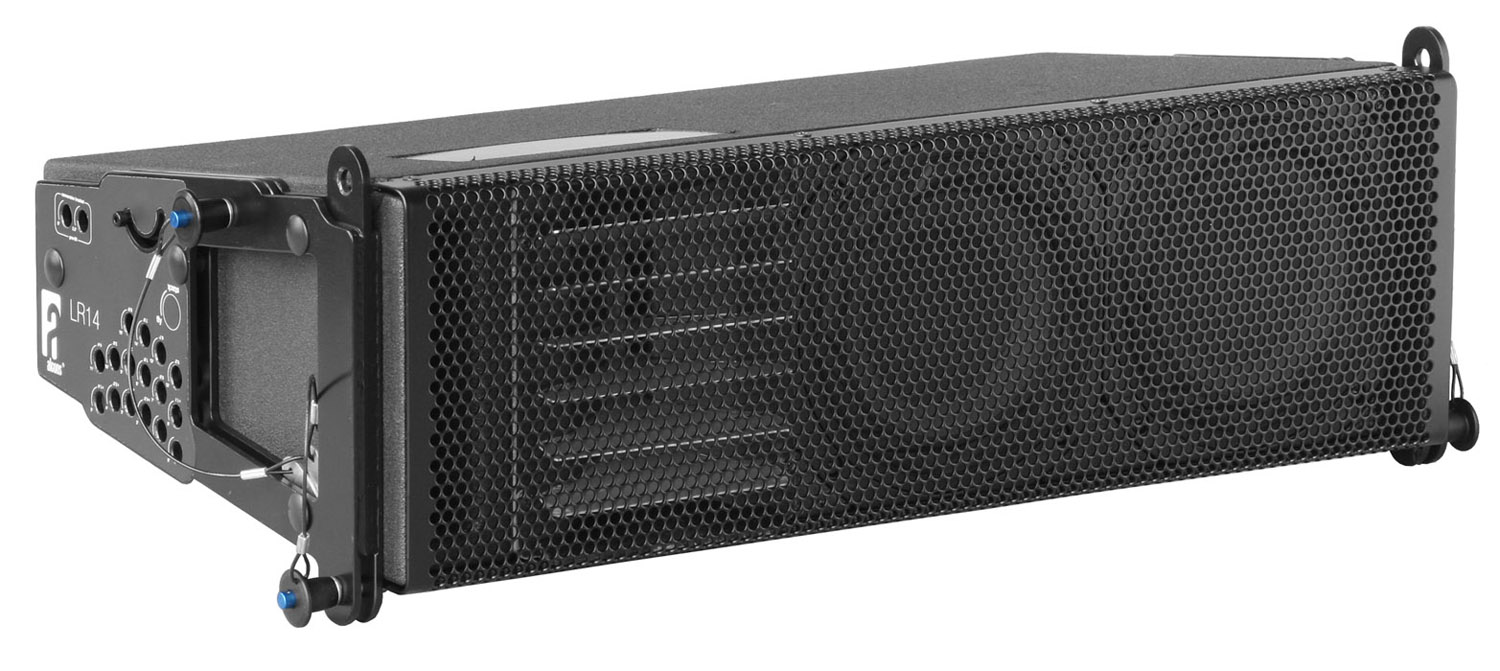 The LR14 is a passive 2-way line-source loudspeaker system. It is a true line-array system, to be used as vertical array, either in stacked or flown configuration, for both portable and permanent installations. Loaded with the RBN401 ribbon driver on a “Morpher” lens (up to 94% frontal radiation!), the system features 120° horizontal dispersion with seamless coverage, due to the ribbon’s all-natural cylindrical (Isophasic) wavefront. Its transient response and unusual high peak power handling (800W/200mS) caters for an amazing intelligibility and throw, while offering maximum gain before feedback up to directly under the array.The ultra-compact size, combined with the weight-saving all Neodymium drivers, makes the system very easy to handle.