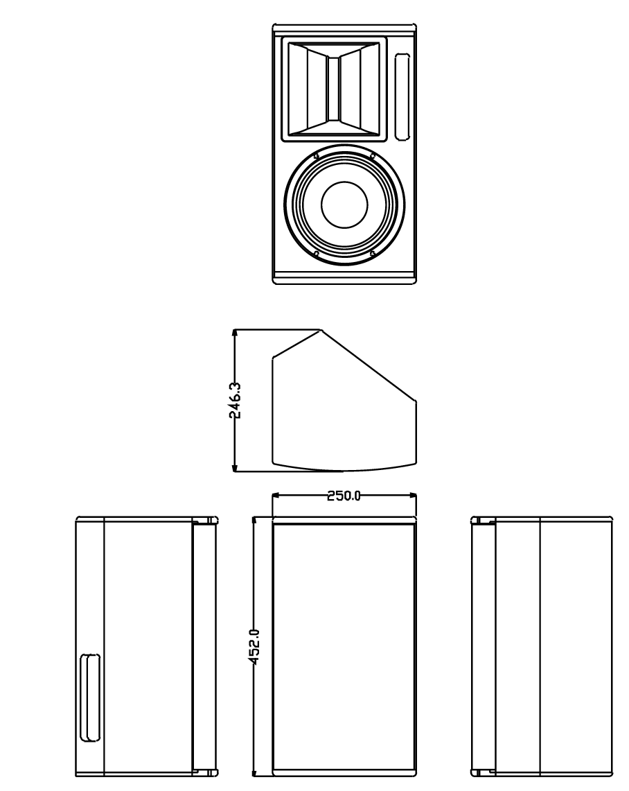 The RBN401 is mounted on a “revolvable” 90°x40° wave-guide and projects with “Real-90” horizontal dispersion up to 20.000Hz. The system includes dedicated filtering, but system equalizing is done remotely (electronically) fully utilizing the individual speaker components’ power capacity. This results in increased headroom SPL. The Signal Integrity Sensing™ pre-wiring ensures complete cable/connector compensation between the VR8 and ALC. The asymmetrical enclosure design provides for very flexible mounting (ceiling, wall) and usage. Typical applications for the VR8 include nearfield main system for theatre, A/V, PA or fill/delay speaker in larger systems, as well as stage monitoring. In applications where extended bass response is required, the VR8 can be combined with a pressurebass or deep-sub system. For full system performance, the VR8 needs to be driven by an ALC controller-amplifier. Driven by the ALC, the VR8 delivers maximum sound quality with increased headroom, under dedicated equalisation and inaudible (power and excursion) protection (SDP circuit). |